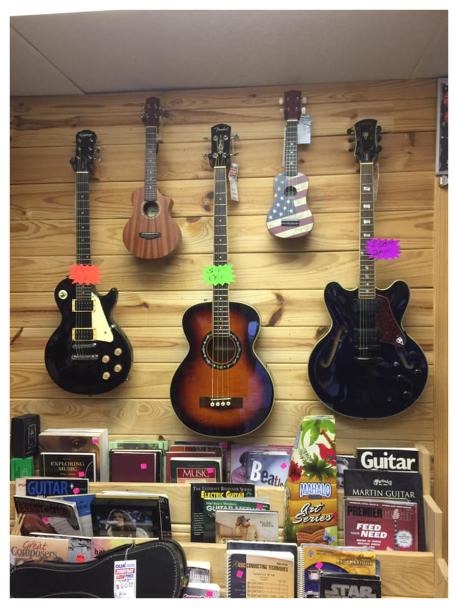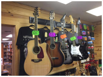 New and used guitars, band shirts, and accessories.