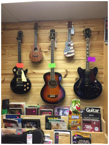 New and used guitars, band shirts, and accessories.
